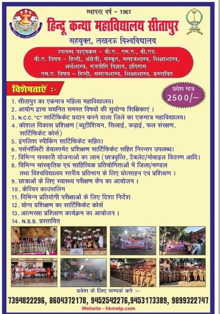 Hindu Kanya Mahavidyalaya, Sitapur is only Government Aided Girls Post Graduate College in Sitapur.